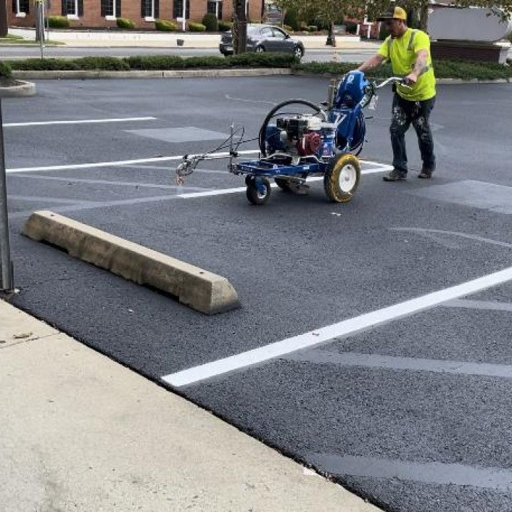 Every business needs direction for ensuring the safety of their customers and employees. It is important that your parking lot stays safe and ADA compliant with visible pavement markings and striping. Fresh lines on any lot always pop while looking professional - especially a freshly sealed black lot - improving traffic flow and boosting curb appeal while also accommodating a safe and effective experience for everyone.